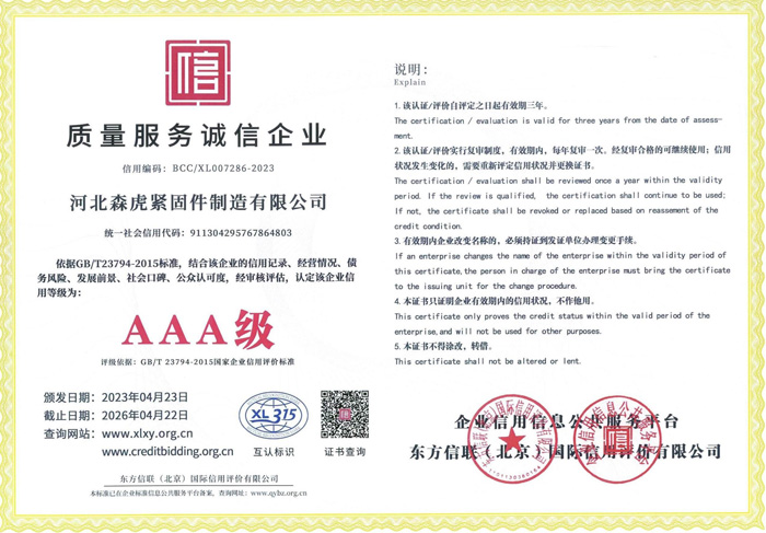 歡迎新老客戶來(lái)電垂詢,來(lái)廠參觀考察,洽談合作河北森虎緊固件制造有限公司
